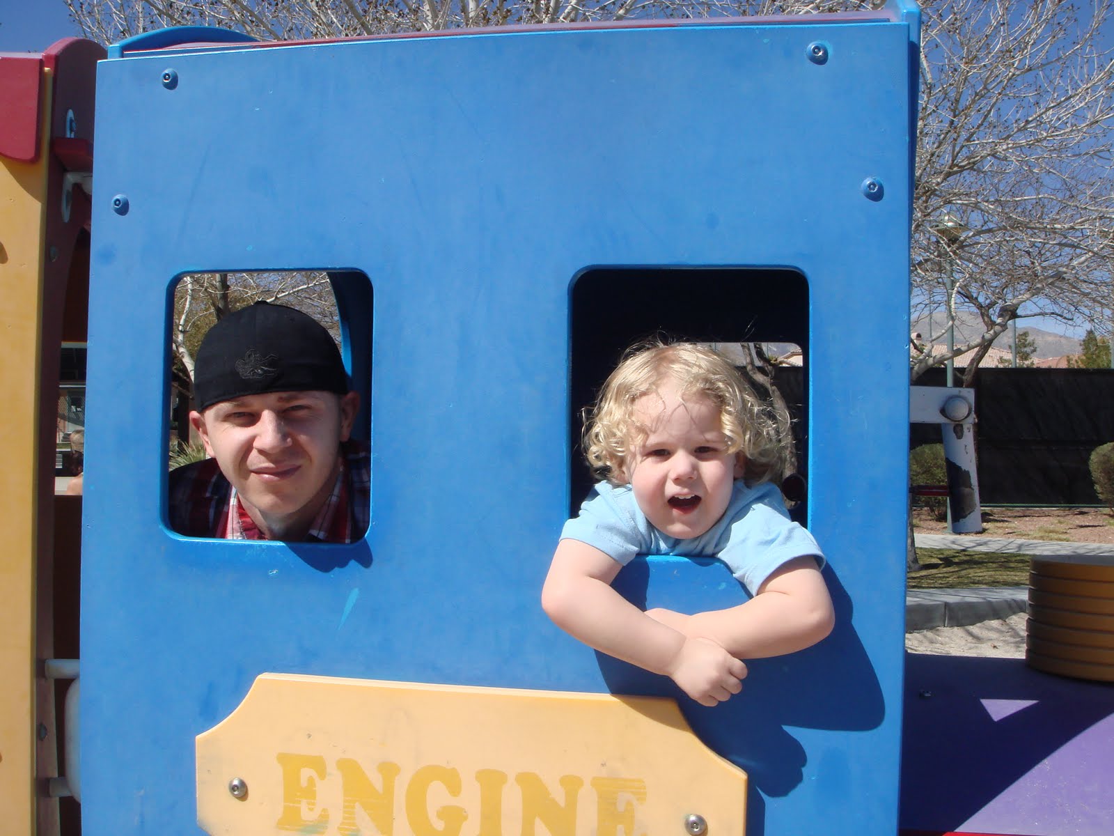 Finally, they noticed the big train and decided to play in there.